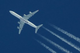 Vyfoceno severně od Plzně. Tento " jezevčík " poprvé vzlétl 13.10. 2006. Zde při letu QR39 z Doha do Paříže, ve výšce 11582 m a rychlosti 846 km/h.