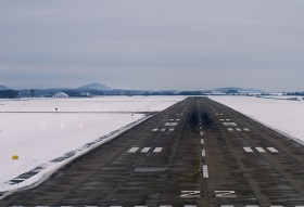 Přistávací dráha ostravského letiště, v levém pozadí s Mrijou.