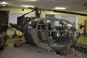 Jedna z 118 Alouette provozovaných u SAAF. Tento stroj létal v letech 1968 až 1997 a nalétal 5201 hodin. Za povšimnutí stojí namotované pískové filtry na vstupu do motoru.
