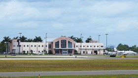 • Pohled z vyhlídkové terasy letiště Hato ve Willemstadu, který je hlavním městem ostrova Curacao. Vyhlídková terasa se nachází 50 metrů od terminálu letiště. Má velikost asi 10 x 5 metrů, je krytá a vstup je zdarma. Součástí terasy jsou lavičky. Na odlet Boeingu 747 společnosti KLM, který je největším lákadlem pro místní a turisty se zde sešlo asi 20 lidí, jinak jsem tu byl po dobu asi 4 hodin většinou sám. Terasa je dobře orientovaná, s celodenním sluncem v zádech.