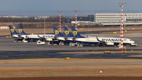 • Pohled nad odstavená letadla na nepoužívané dráze 04/22 na Pražském letišti. Letadla na snímku tvoří v Praze asi méně než polovinu odstavených letadel, další jsou před hangárem E, F, na druhé straně dráhy 04/22 a na apronu před prstem C. Na snímku jsou kromě A320 a 2x A319 ještě B737-800 a také vyrovnané B737-MAX. U nástupních mostů letiště je pusto a prázdno.