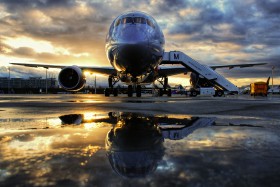 Tři generace businessjetů Bombardieru na jedné fotce - v pozadí vlevo CL-604 Challenger od Air Independance, v pozadí vpravo BD-700 Global 6000 od K5 Aviation. Na snímku letoun soukromé společnosti Hyperion Aviation při nočním lijáku.