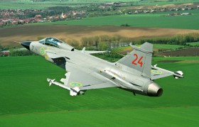 Saab 39A při předvádění pro AČR v Brně 10.5.1997. Jedná se o dvacátý čtvrtý vyrobený letoun.