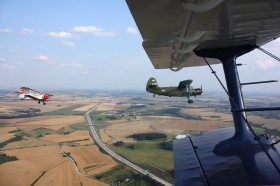 Pohled z OK-VHC na plzeňské OK-WHB, které je pronásledováno hradeckým OK-HFL při sletu "Andul" v Německu