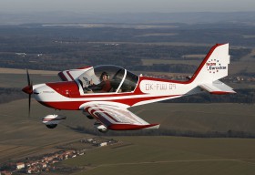 Prototyp 001 firmy Evektor nad dráhou 03 LKKU