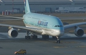 • Třetí Airbus A380 v Praze, první v barvách Korean Air. Přiletěl na pravidelné lince ze Soulu z kapacitních důvodů. Místo nafilmování přistání z lepšího místa jsem dal přednost slavobráně.. Doufám, že přistání a start zaznamenám u dalších možných příletů :-)